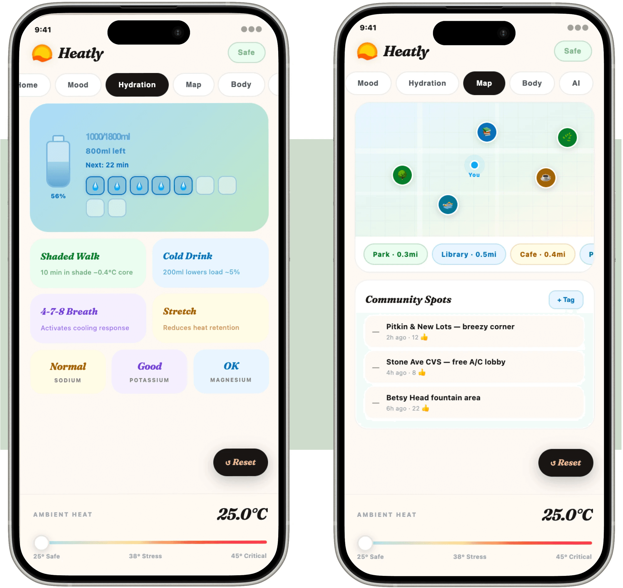 Reminders to drink water and cool down